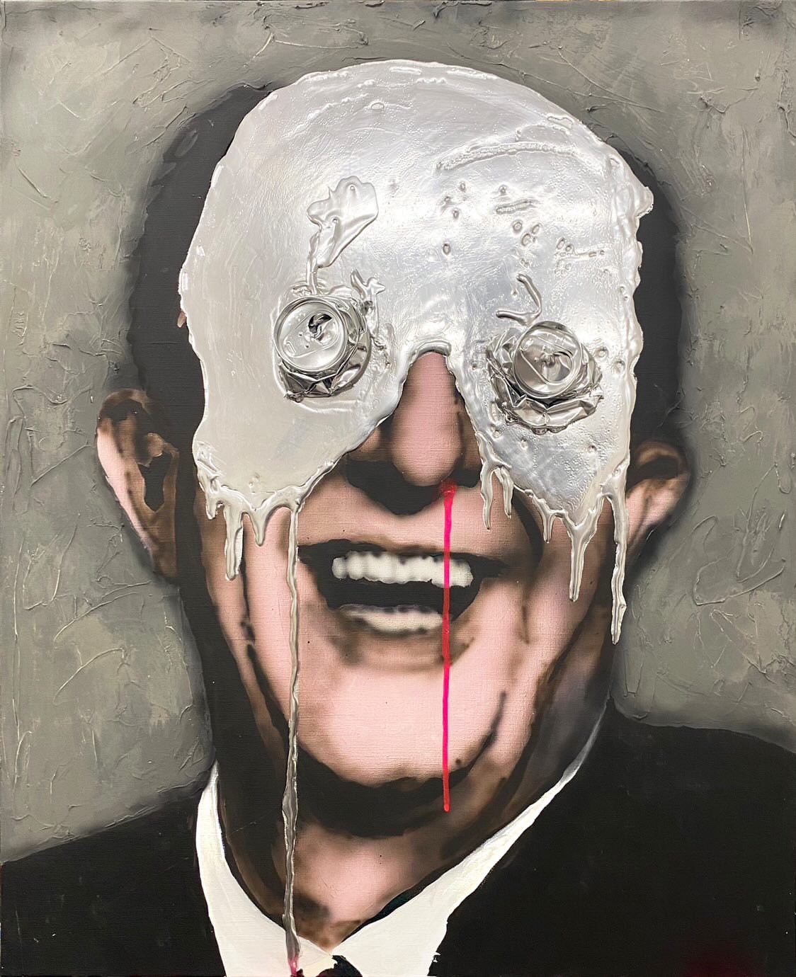 Chrome” はポートレイトの言わばそれをそれとして成す重要な要素である顔または表情をメディウム、レジン、シルバーペイントなどで、 人間の持つ温かみや人間の有機性を生物の性質を有さない無機質な素材を重ねることで相対化し、多層構造の半立体物で覆い隠すことで反射が空間を より複雑化し被写体の持っている本来の姿や本質を想起させ、その全てがお互いに絡み合い相互反応し無秩序な状態を作り出すことで認識の変化、 認知の変化を与え鑑賞者を混沌へと促す。また表情を覆い隠すことで、被写体の断片から自己相似性を見出し自己の存在を顕在化させ、自己を再編集し 再認識をする。